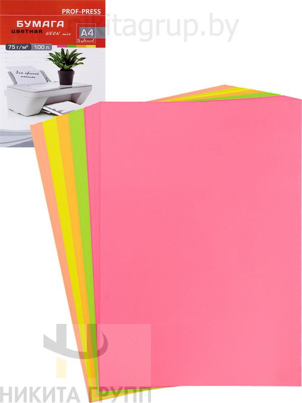 Цветная бумага для офисной техники neon mix А4, 100 л. (5 цветов) 75 г