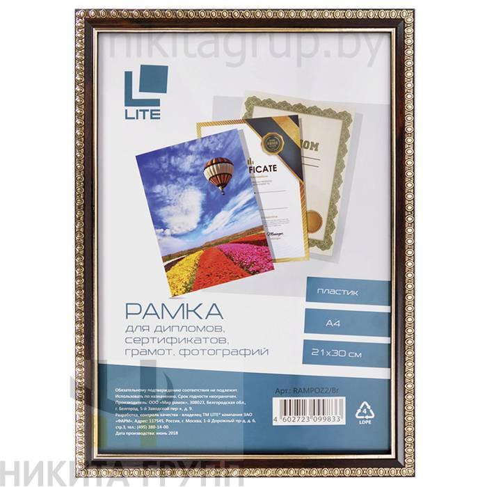 Фоторамка А4 LITE 21х30 см рамка пластик коричневый с двойной позолотой, вставка стекло
