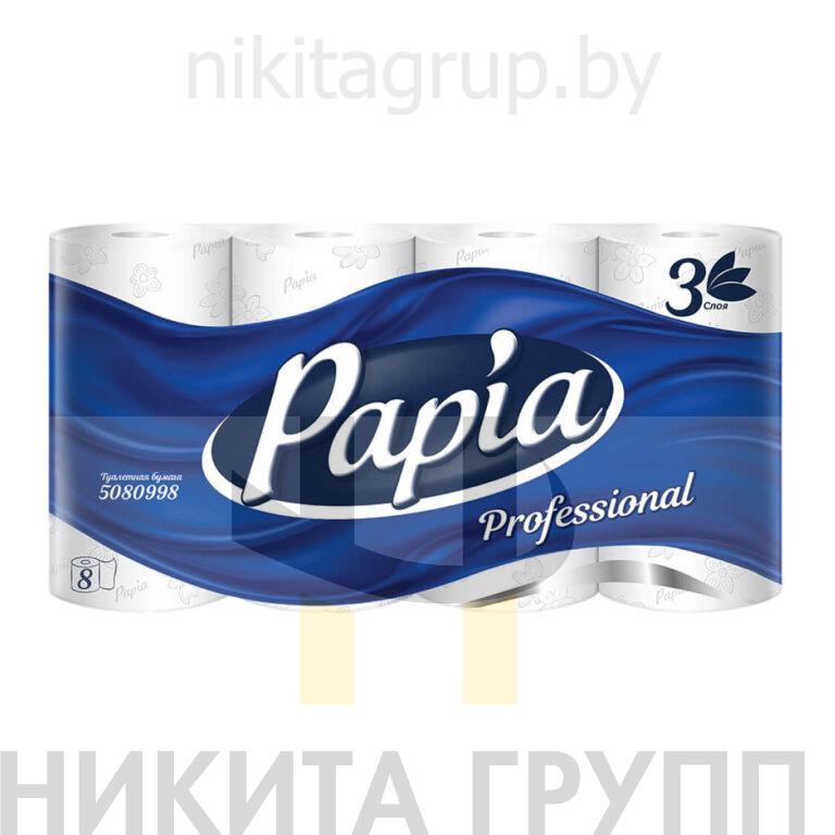 Туалетная бумага PAPIA PROFESSIONAL 3слоя 8 рулонов